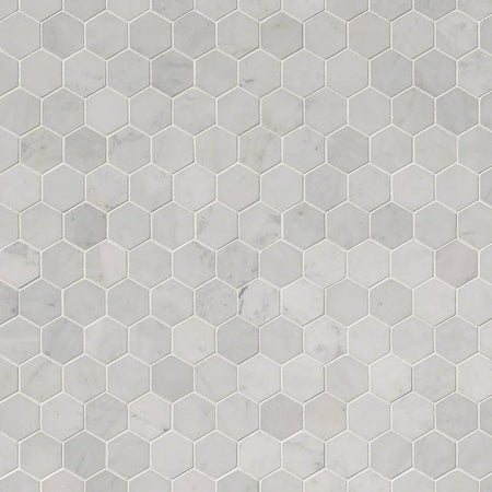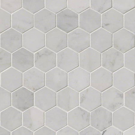 GREECIAN WHITE 1" HEXAGON POLISHED IN A MESH